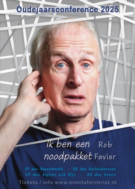 Herinnert u zich nog het optreden van 28 februari jl. met Rob Favier? Hij was in Haren tijdens ons feestelijke weekend waarin we samen één gemeente werden. Wij zijn uitgenodigd door Rob Favier om zijn christelijke oudejaarsconference te bezoeken. Het zou natuurlijk ontzettend leuk zijn om deze voorstelling , gemeentebreed, mee te beleven. Het is een avondvullend programma met pauze. Het is naast gesproken gedeelten ook een muzikaal feest en Rob wordt begeleid door een kwartet van topmuzikanten. Thema: ‘Ik ben een noodpakket’ Datum: Zondag 28 december 2025 Plaats: Surhuisterveen Tijd: 20:00 uur (zaal open om 19:00 uur) Tickets en info: www.eventsforchrist.nl Reserveert u zelf uw kaarten? Wilt u graag carpoolen of heeft u nog vragen ? Neem dan gerust contact op met : Oedsen en Afke van der Kooi Tel 0612434598 Mailen kan ook naar kooivduj@hetnet.nl